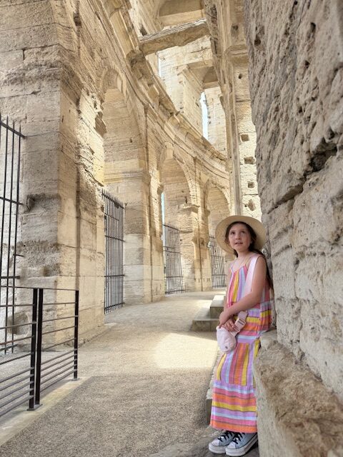As anyone who knows me is well aware, I am obsessed with Greek and Roman history. And Provence (or Transalpine Gaul, as it was known in ancient times) is a perfect place to see an amalgam of Roman history and modern life. On our recent trip to Provence, we made it a point to take Josephine to the region’s most extraordinary Roman archaeological sites—not as a formal history lesson, but as an invitation to experience the past with her feet, her eyes, and her imagination.